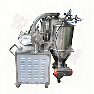 真空上料机是利用压缩空气通过真空发生器产生高真空实现对物料的输送,不需要机械式真空泵,具有结构简单、体积小、免维修、噪音低、控制方便、消除物料静电和符合GMP要求等优点。真空发生器产生的高真空,使被输送的物料杜绝了分层现象,保证了混合物料成分的均一性,是压片机、胶囊填充机、干法制粒机、包装机、粉碎机、振动筛等机械自动上料的设备,减轻了工人的劳动强度,解决了加料时粉尘外溢等问题,是制药厂、食品厂通过GMP认证、促进清洁、文明生产的设备。