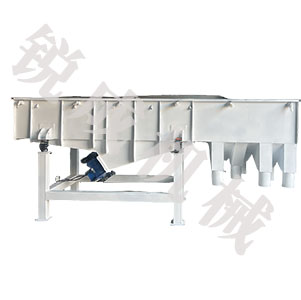 直线振动筛采用双振动电机驱动,当两台振动电机做同步、反缶旋转时,其偏心块所产生的激振力在平行于电机轴线的方向相互抵消,在垂直于电机轴的方向叠为一合力,因此筛机的运动轨迹为一直线。其两电机轴相对筛面有一倾角,在激振力和物料自重力的合力作用下,物料在筛面上被抛起跳跃式向前作直线运动,从而达到对物料进行筛选和分级的目的。直线振动筛(直线筛)可用于流水线中实现自动化作业。具有能耗低、效率高、结构简单、易维修、全封闭结构无粉尘溢散的特点。筛分目数400目,可筛分出7种不同粒度的物料。